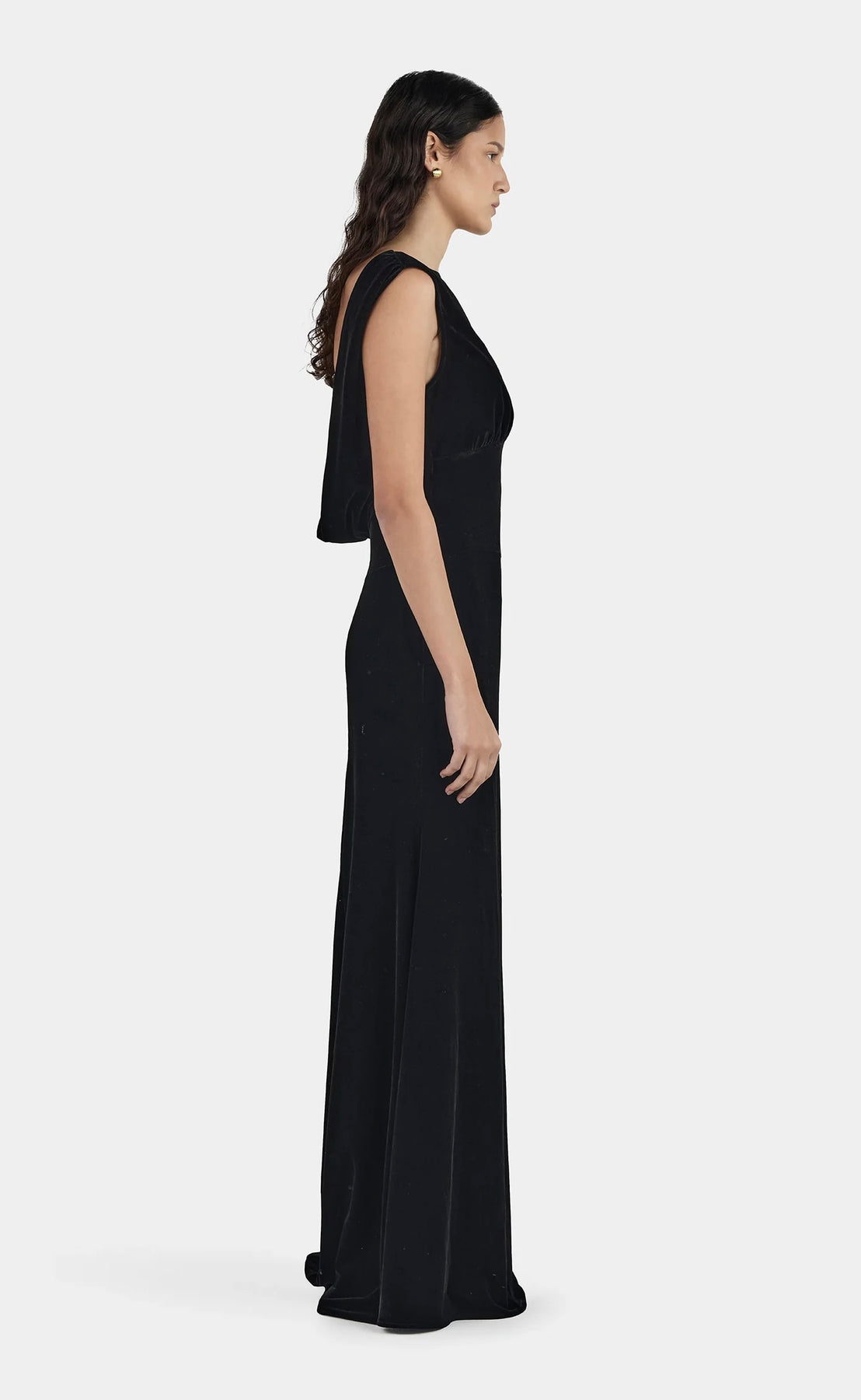 The Isolde Dress is a floor length dress made from our luxurious velvet fabrication. The dress is fitted through the waist with a curved underbust and hip seam and a light gather to accentuate the figure. The dress is open back and has a boat neckline at the front with a light cowl.