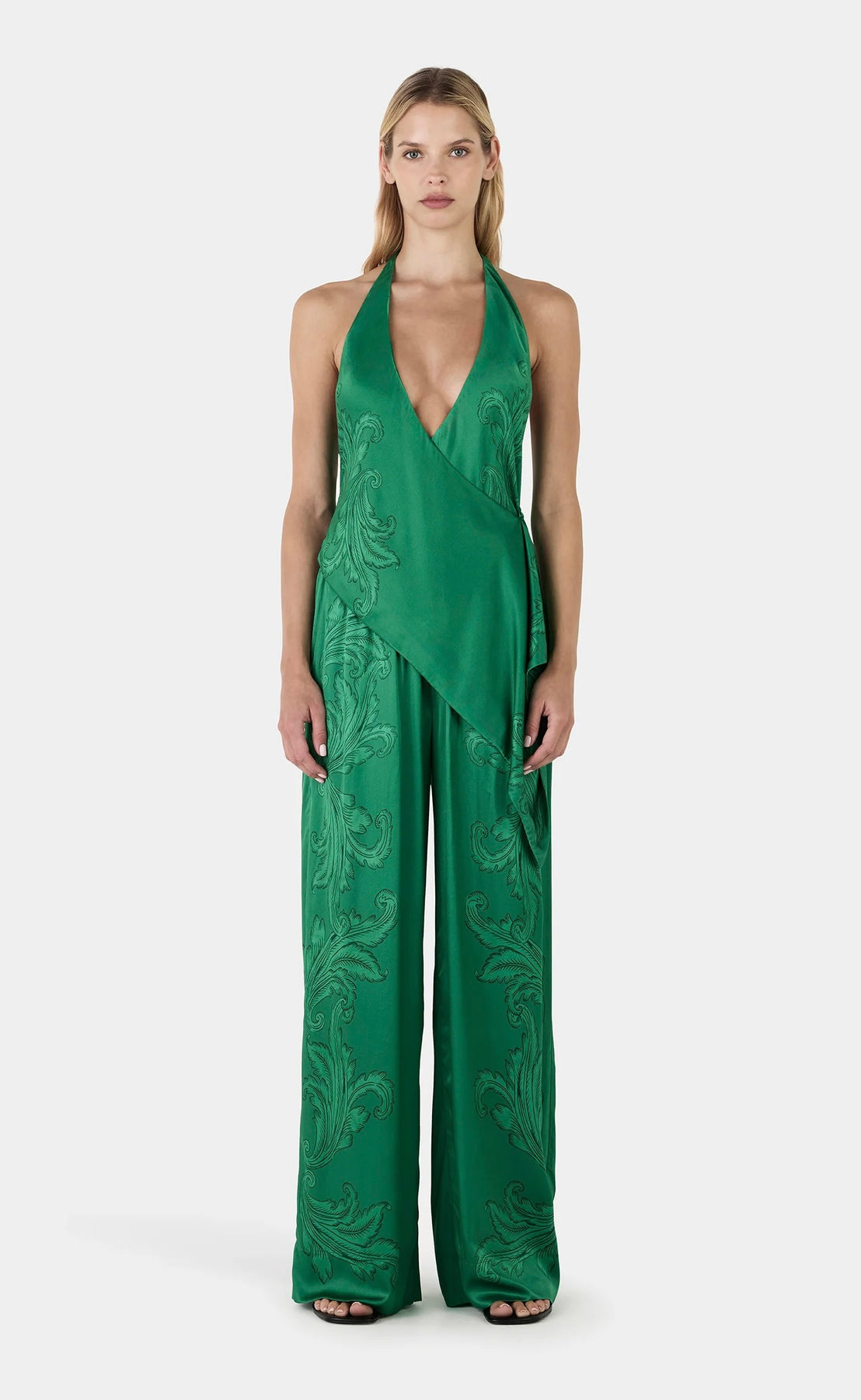 The Annika Pant are a wide leg, relaxed fit trouser in a mid to high-rise fit. The trousers have an elasticated waistband and are a full length. Pair with the Matching Aisling Top for a complete look.