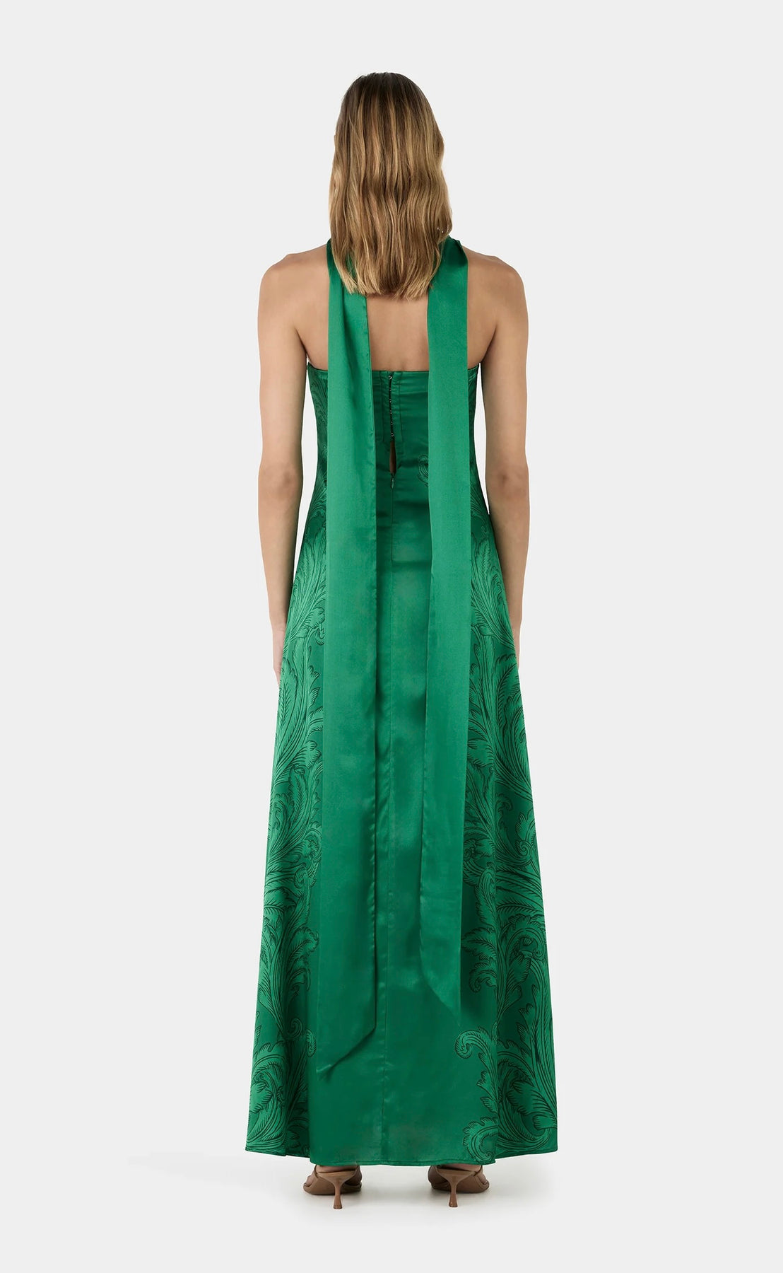 The Rhiannon Dress is a beautiful strapless maxi gown, bias-cut to drape and flatter the figure. Featuring a centre back hook and eye closure, and completed with a matching scarf, offering versatile styling options to suit the occasion.
