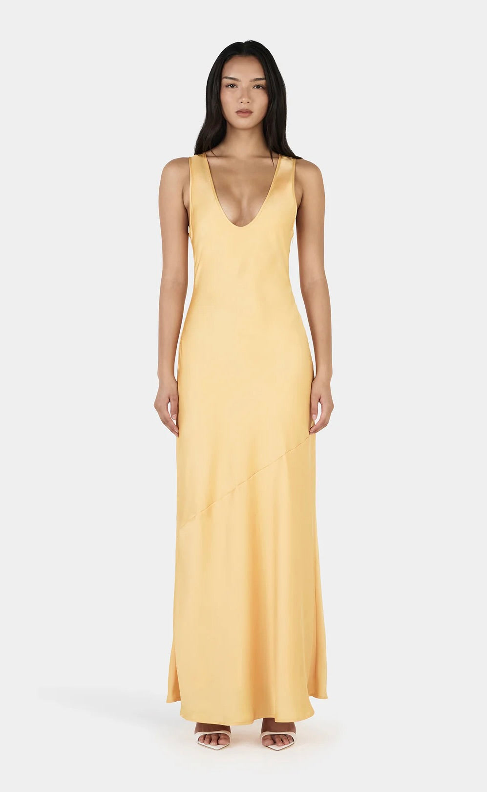 The Lauren Maxi Dress is a bias cut slip dress with a low scoop neckline and an angled bias seam to drape over the figure beautifully. The dress has a soft satin outer and is fully lined inside with a centre back invisible zip to keep a smooth silhouette.